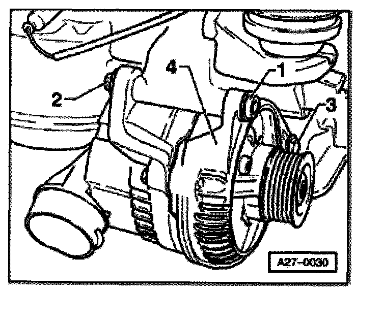 - Remove mounting clamp -1- for refrigerant lines above torque arm.