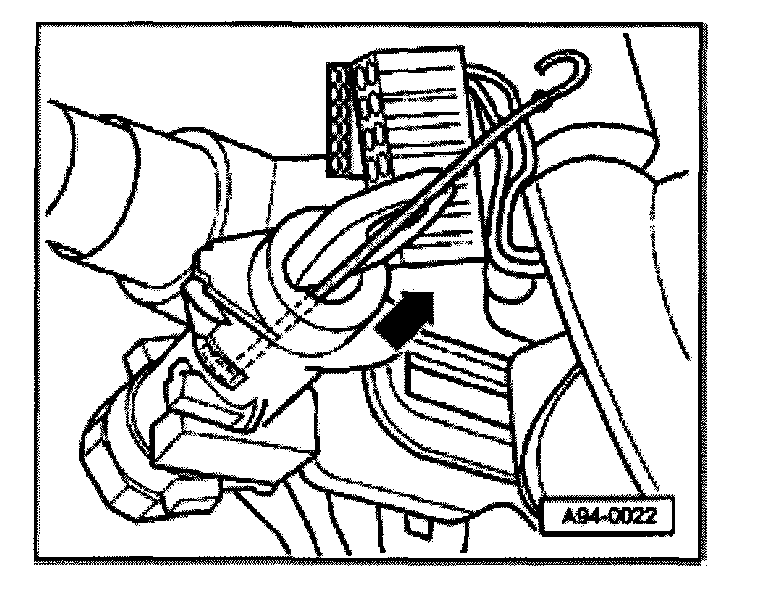 - Insert length of steel wire or small screwdriver (approx. 2 mm dia.) as far as it will go, as illustrated, and pull lock cylinder out of steering lock housing in direction of arrow.