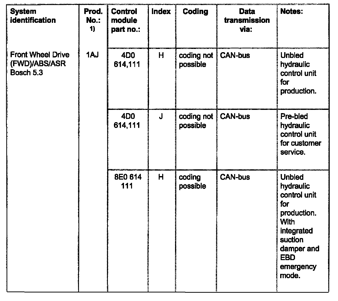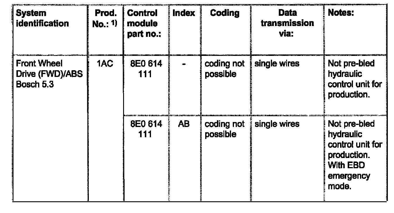 The coding is only indicated for vehicles with Anti-Slip Regulation (ASR), coding control module.