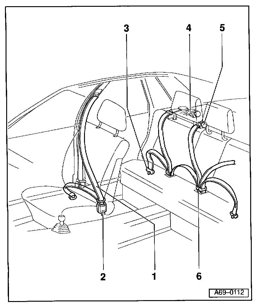 5 - Rear center three-point seat belt