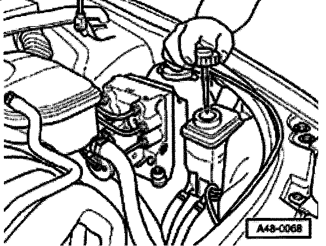 - Fluid level must be in area of "MIN." marking (up to 2 mm (0.08 inch) above or below marking)