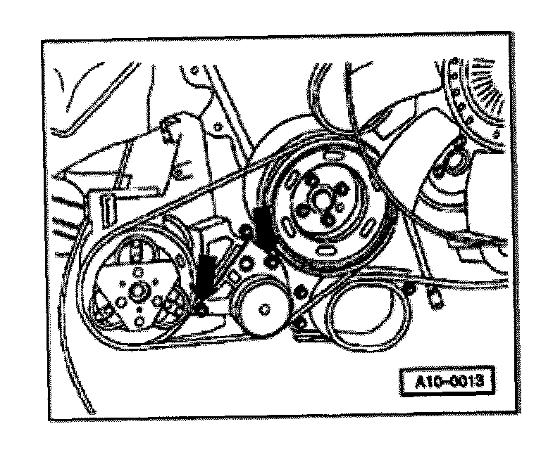 - Loosen mounting bolts for air conditioning compressor belt tensioner (arrows).