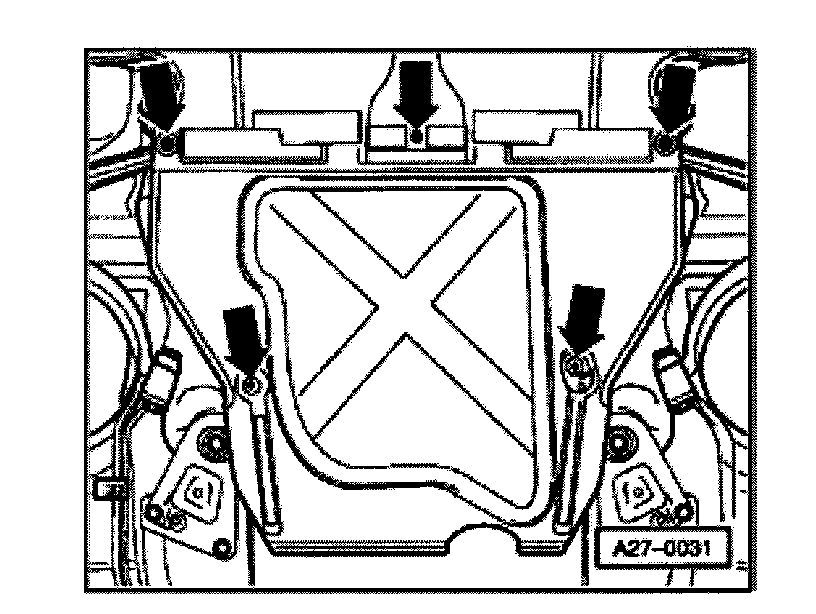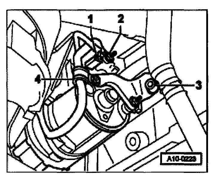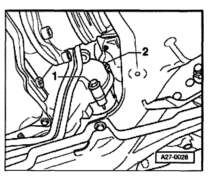 - Upper bolt -1- can be unscrewed from right-front wheel housing.