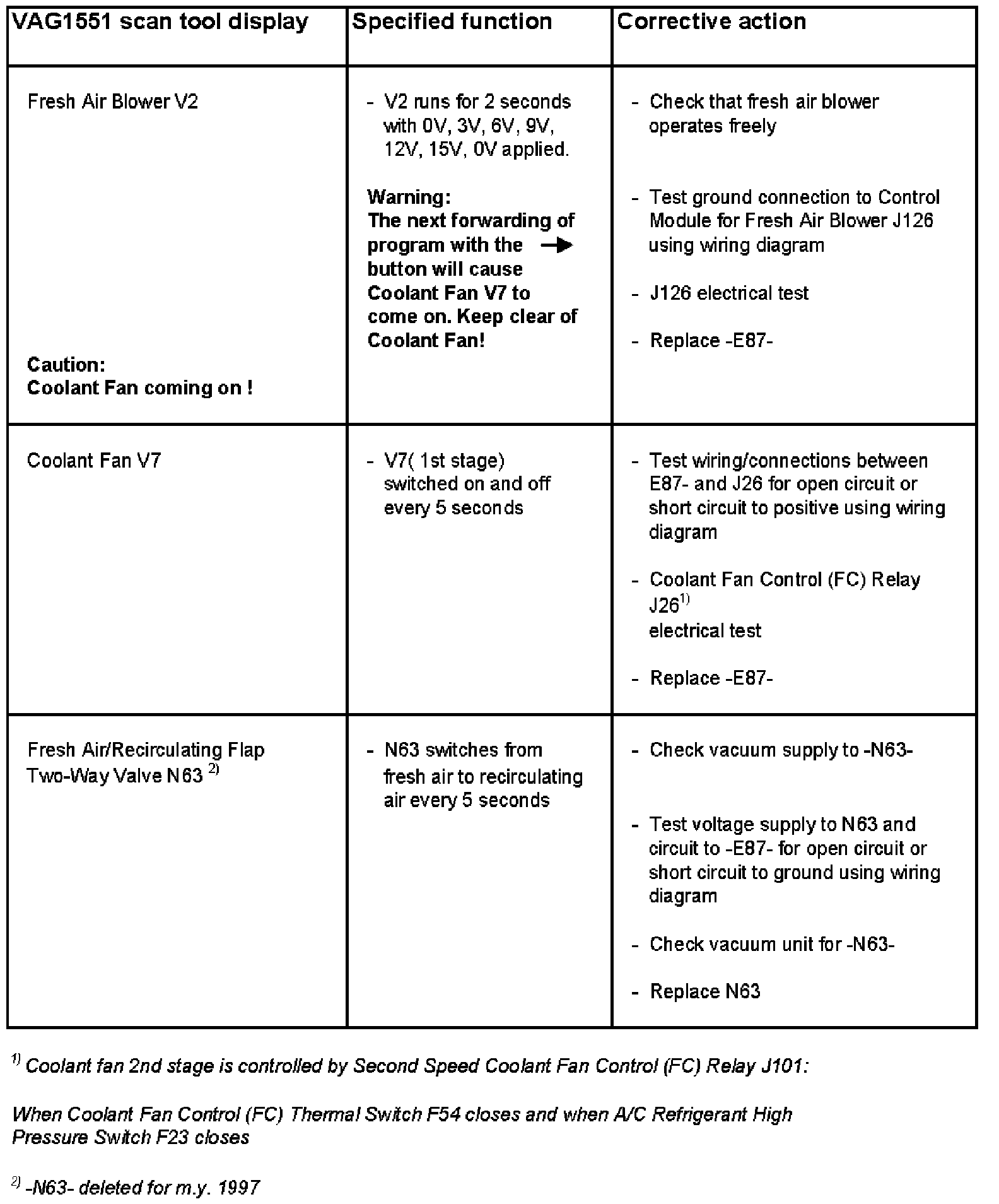 - If the readout "function unknown or cannot be carded out at the moment" appears in the display at the start of output DTM, e.g. when engine not running, press -> button and once again select "function 03 Output Diagnosis Test Mode (DTM)" (DTM component "A/C Clutch N25" is no longer actuated for this test).