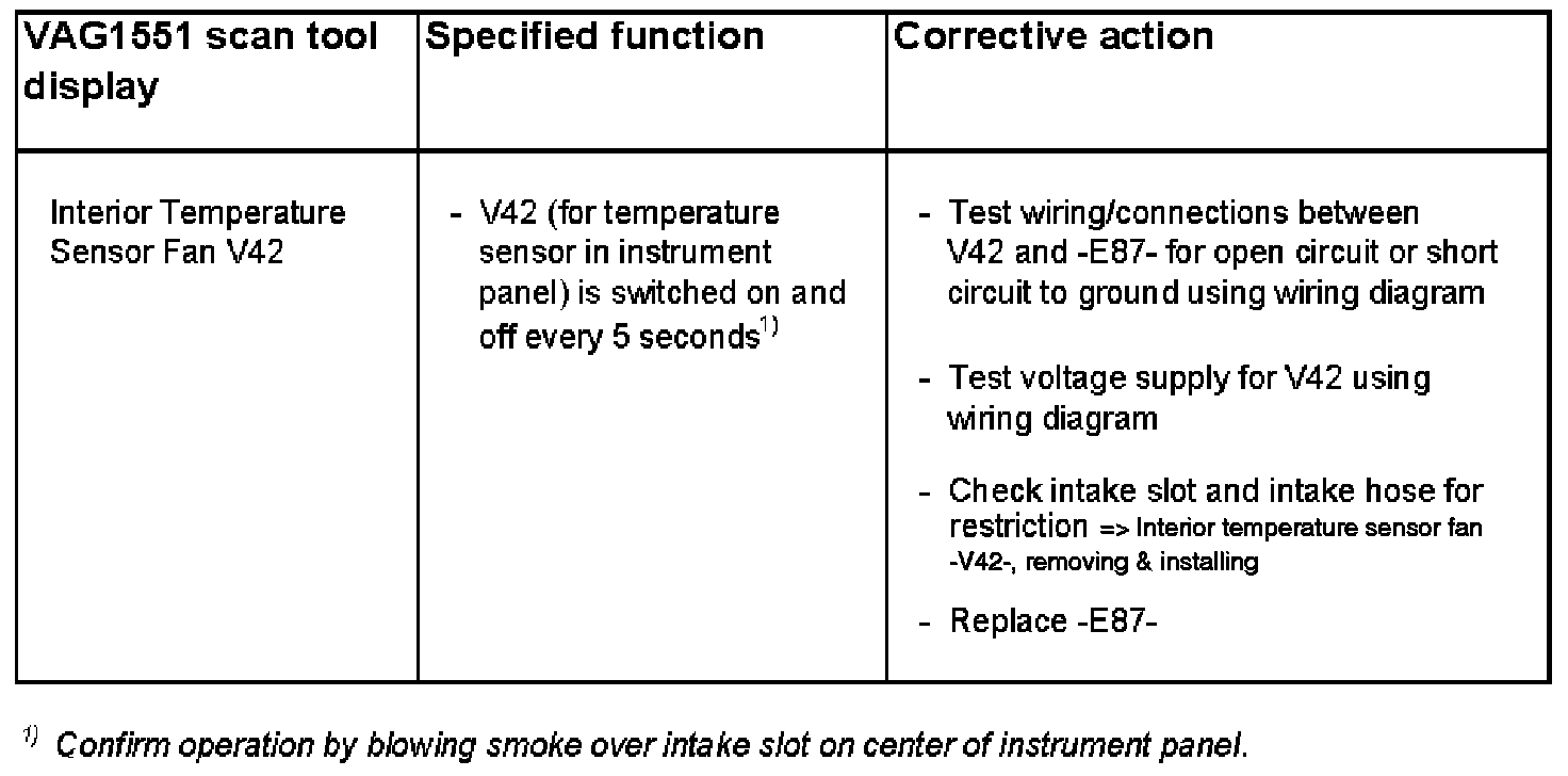 - Interior temperature sensor fan -V42- is activated via an A/C control head: