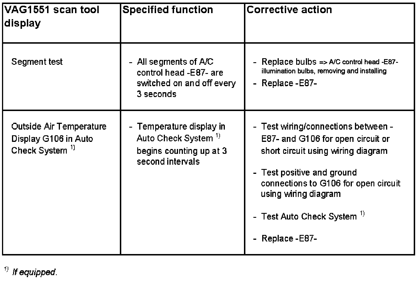 - Outside air temperature display -G106- is activated via an A/C control head