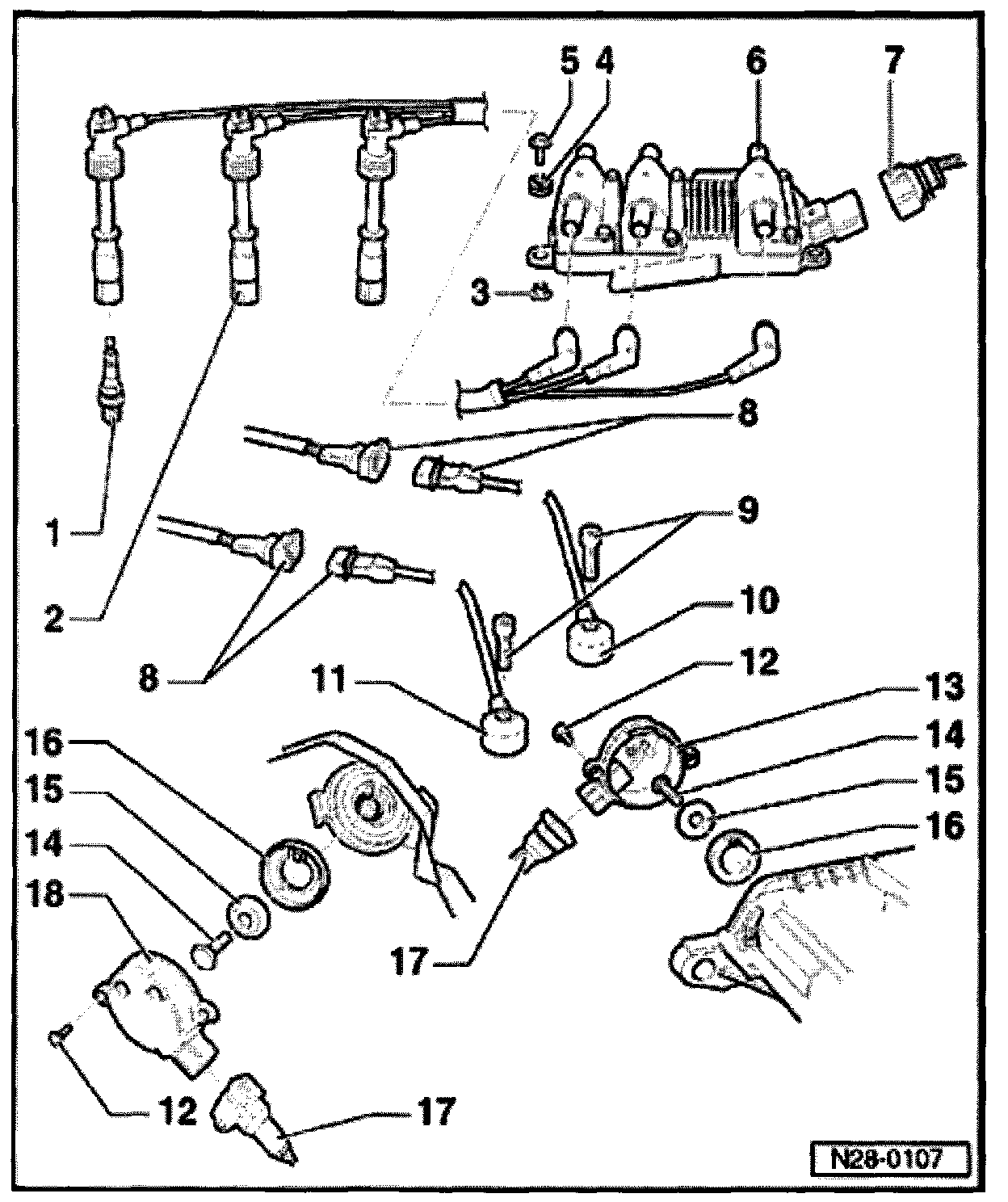 6 - Ignition coils (-N-, -N128-, -N158-)