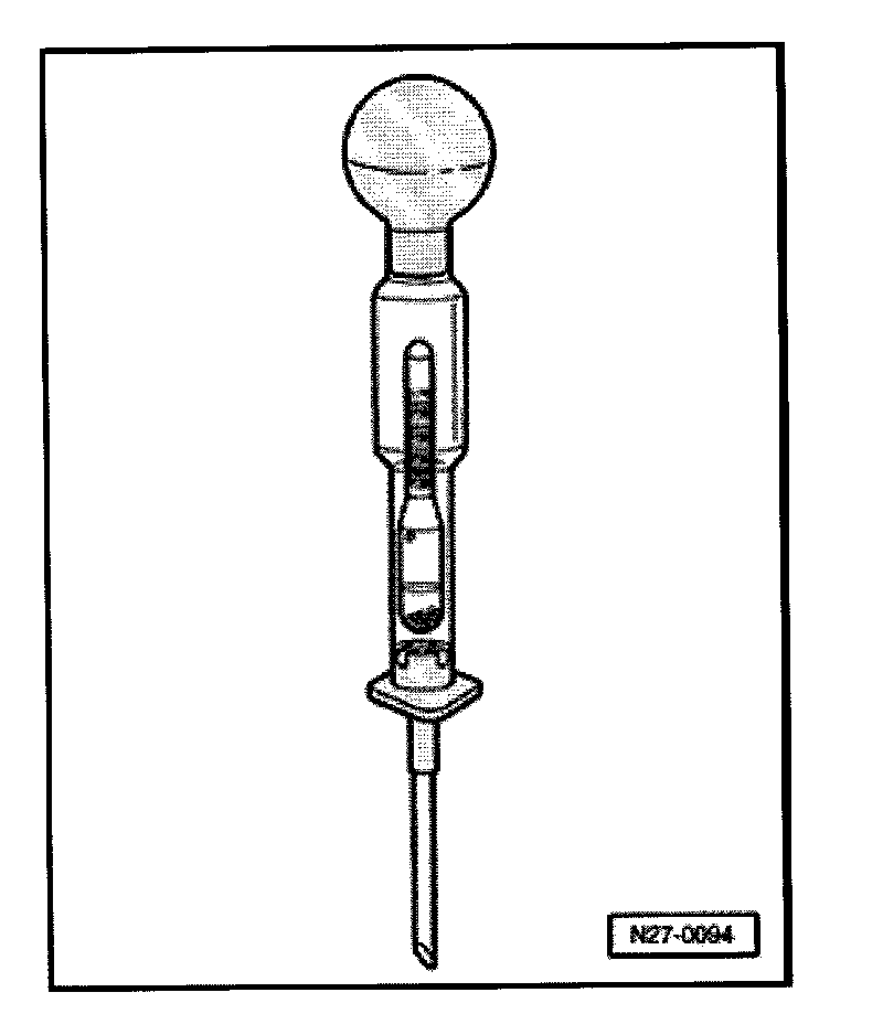 - If electrolyte level is too low, add distilled water up to maximum mark using VAS5045 battery cell filler.