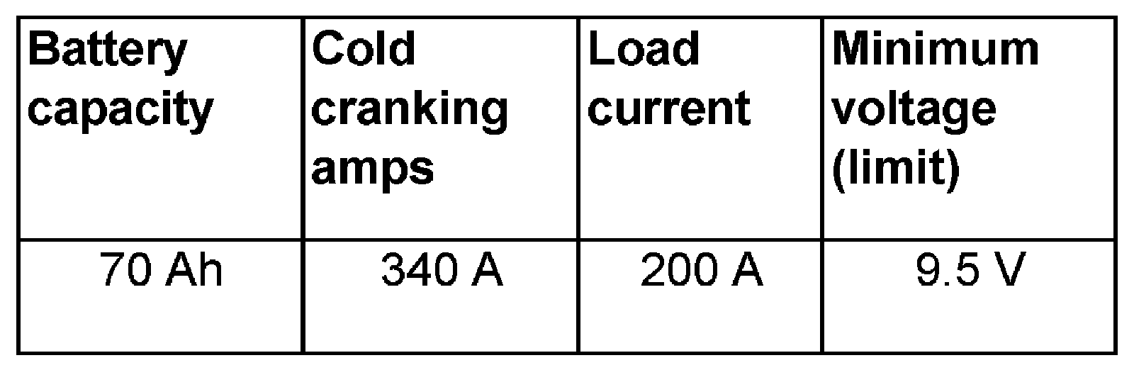 - The severe load (ohmic resistance) during this test (high current draw) causes the battery voltage to drop. If the battery is in good condition, the voltage value will only drop to the minimum voltage. The minimum voltage varies and depends on battery capacity and cold cranking amps. Cold cranking amps is understood to be the capacity of the battery in cold weather. Batteries with high cold cranking amps are especially important in vehicles with high compression engines.