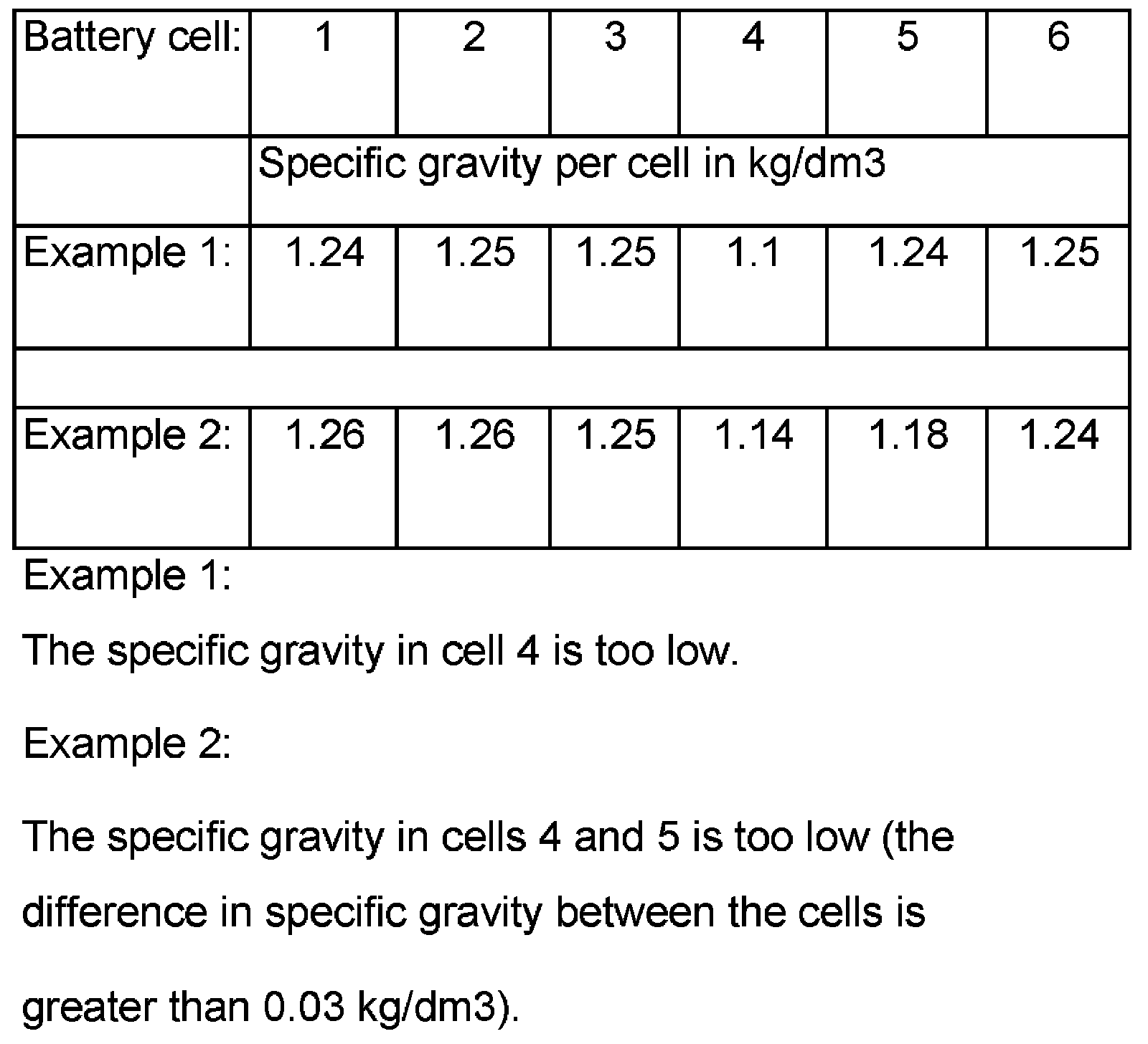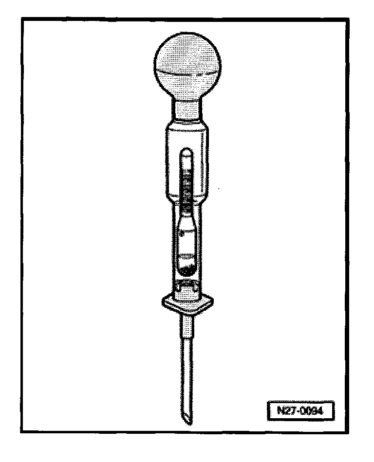 NOTE: The measured values for the specific gravity of the individual battery cells must not vary by more than 0.03 kg/cubic dm.