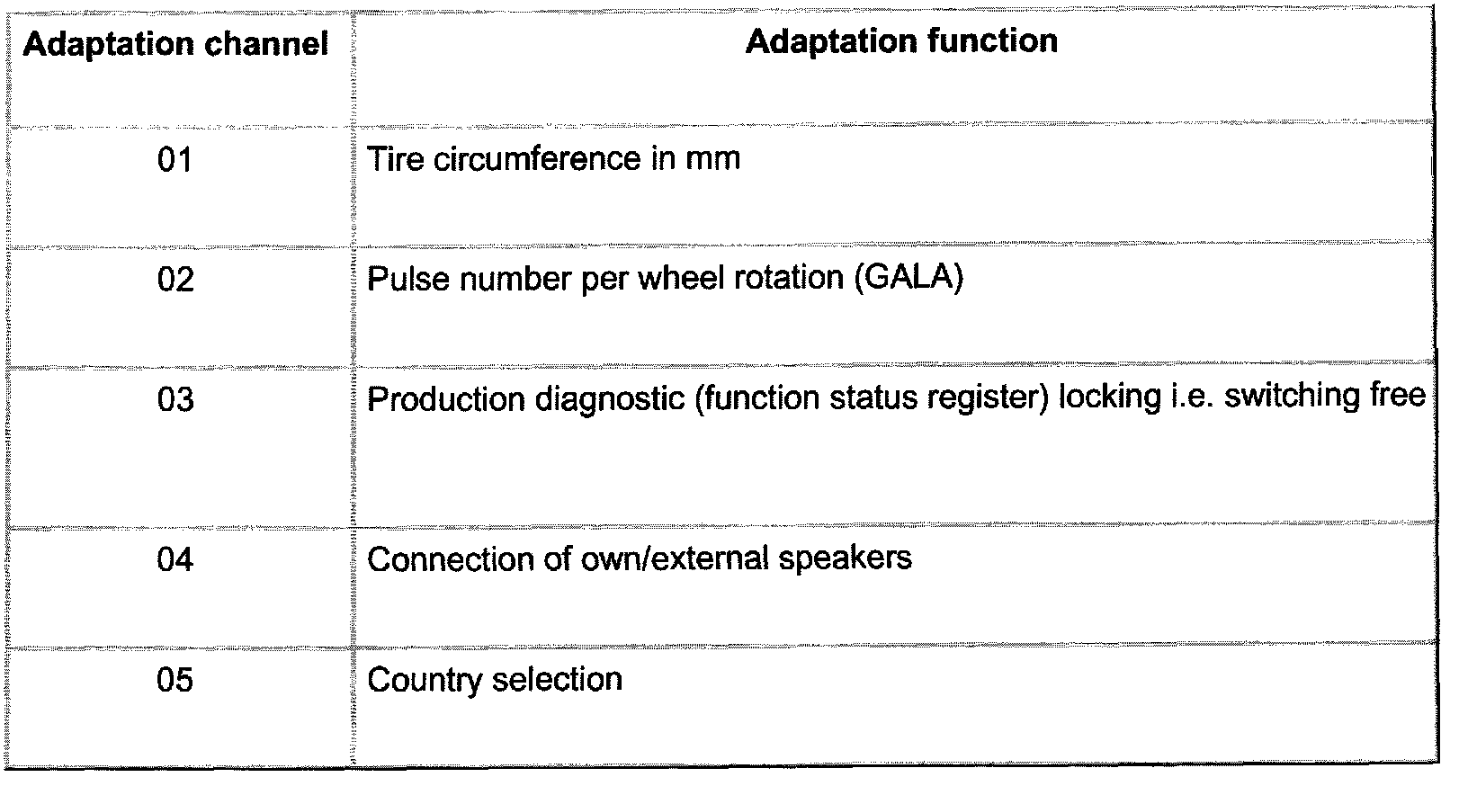 Individual functions are called up by entering the appropriate adaptation channel numbers (listed in the adaptation table).