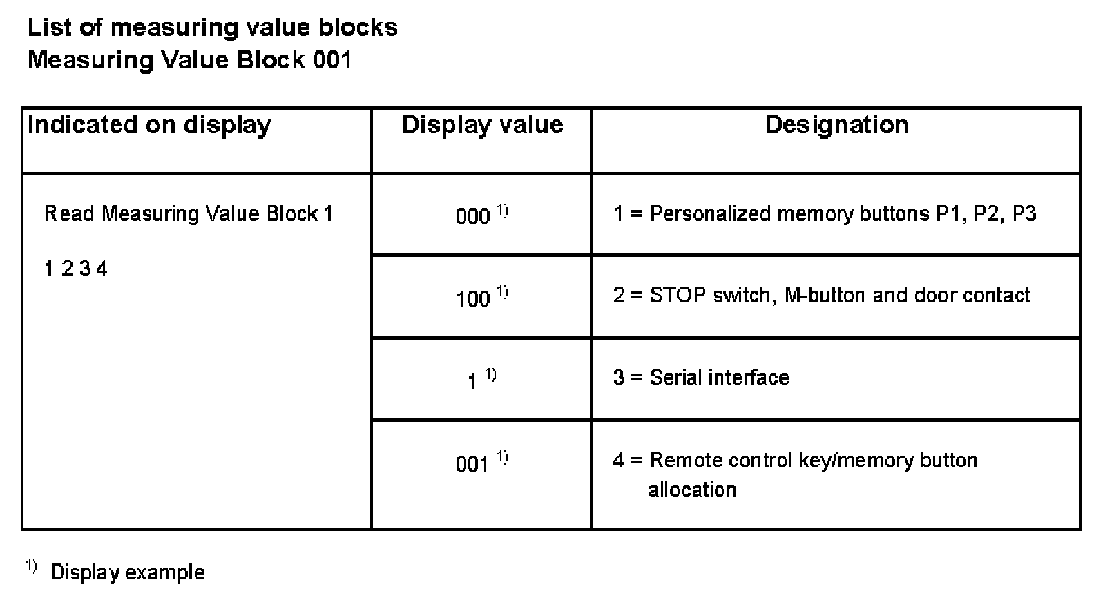 List Of Measuring Value Blocks