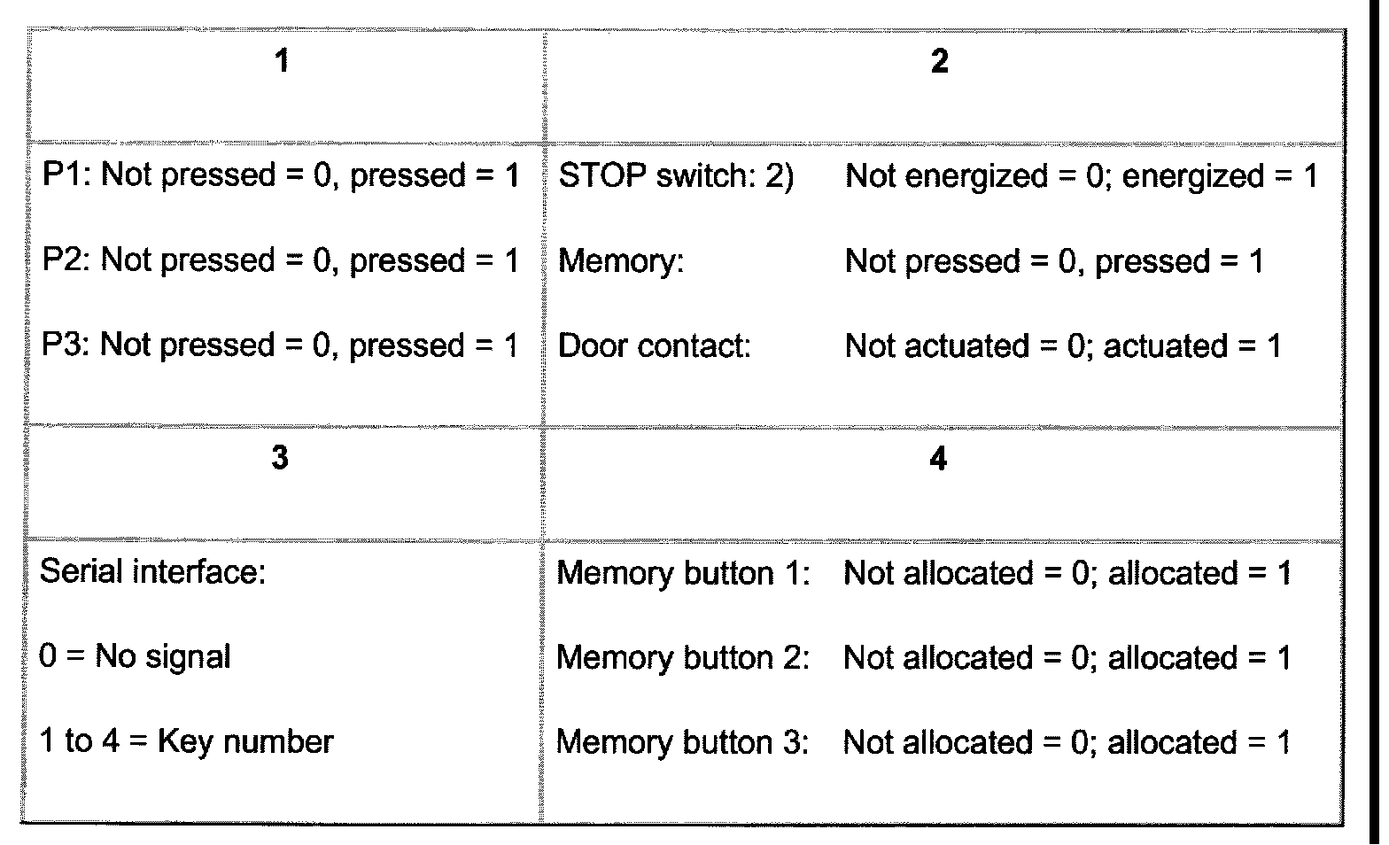2) Emergency off (STOP switch) causes all three positions to be switched to "0