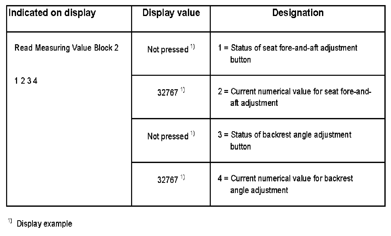 NOTE: Values apply to memory position 2.