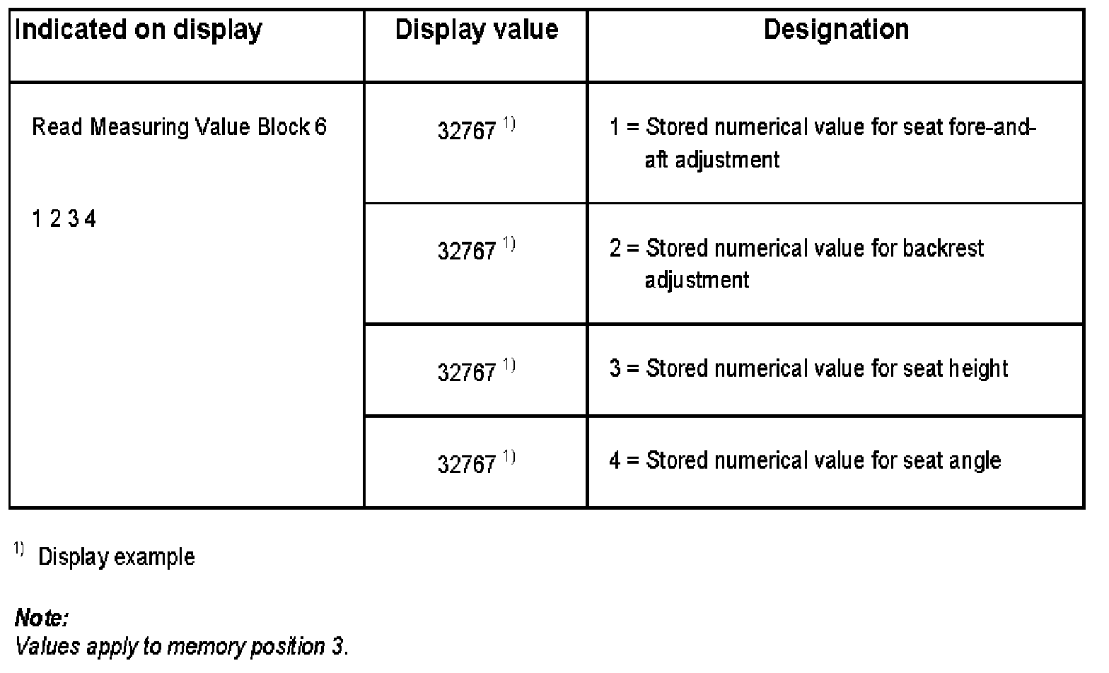 NOTE: Values apply to memory position 3.