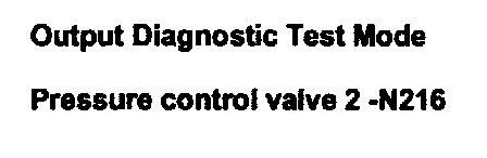 ^ Pressure Control Valve 1 -N215, Pressure Control Valve 2-N216, Pressure Control Valve 3-N217, Pressure Control Valve 4 -N218 and Pressure Control Valve 5 -N233 are activated by the Output Diagnostic Test Mode (DTM). A direct function test of these components is not possible, however possible malfunctions that could occur are detected by OBD and stored in DTC memory.