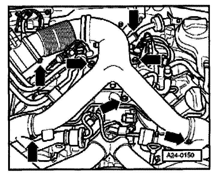 - Disconnect connecting line from Secondary Air Injection (AIR) pump motor to combination valve at one of the combination valves, close connecting line and blow through again.