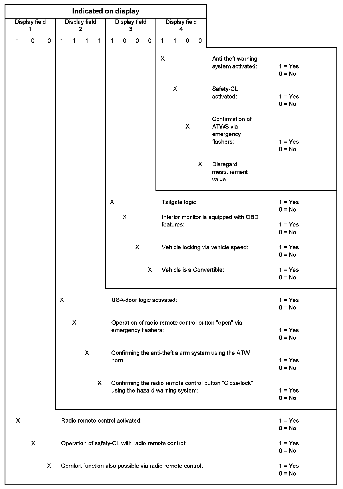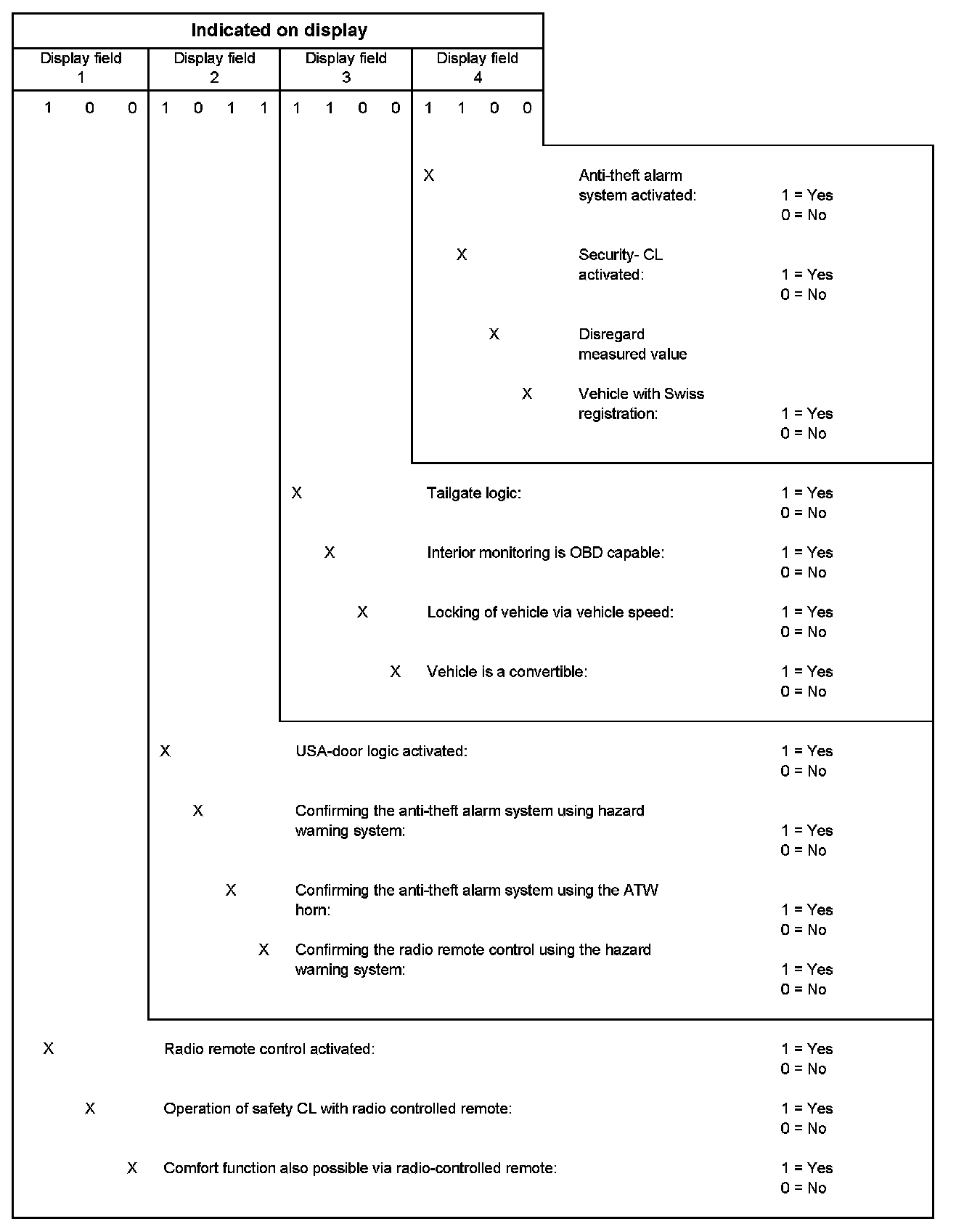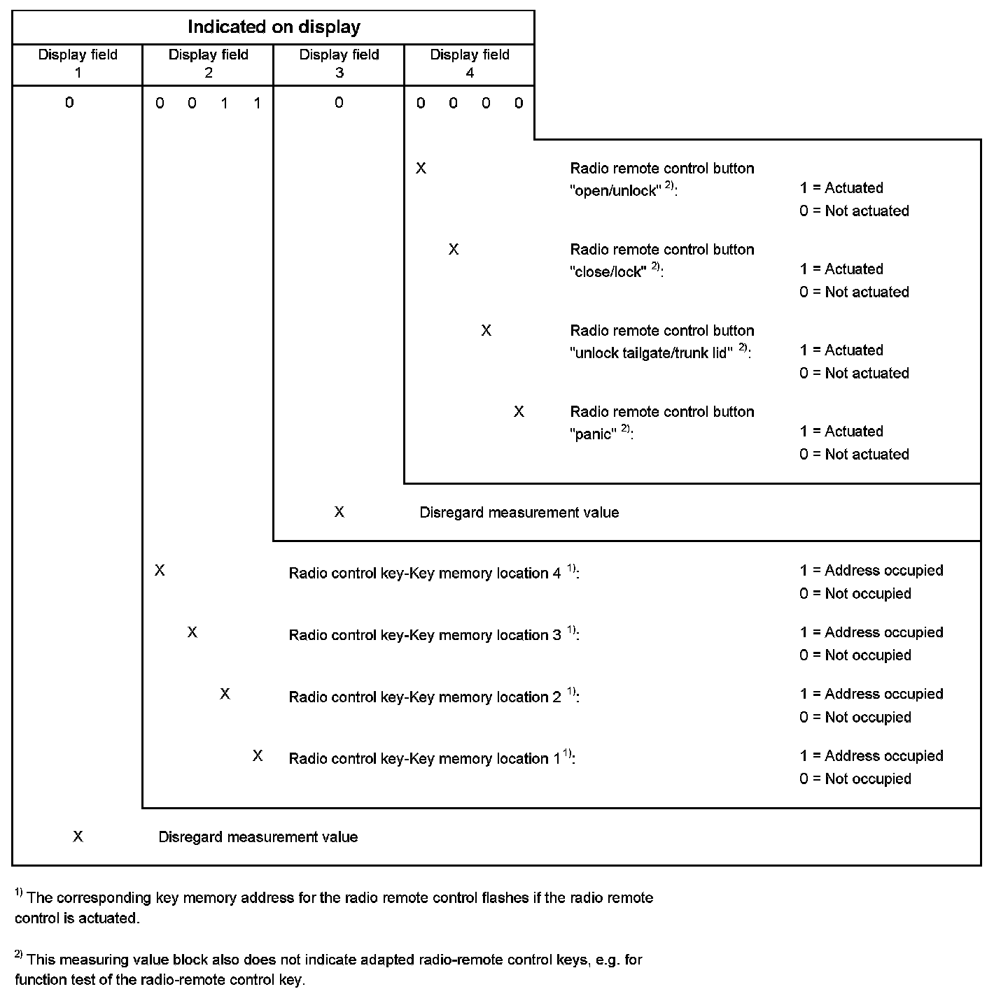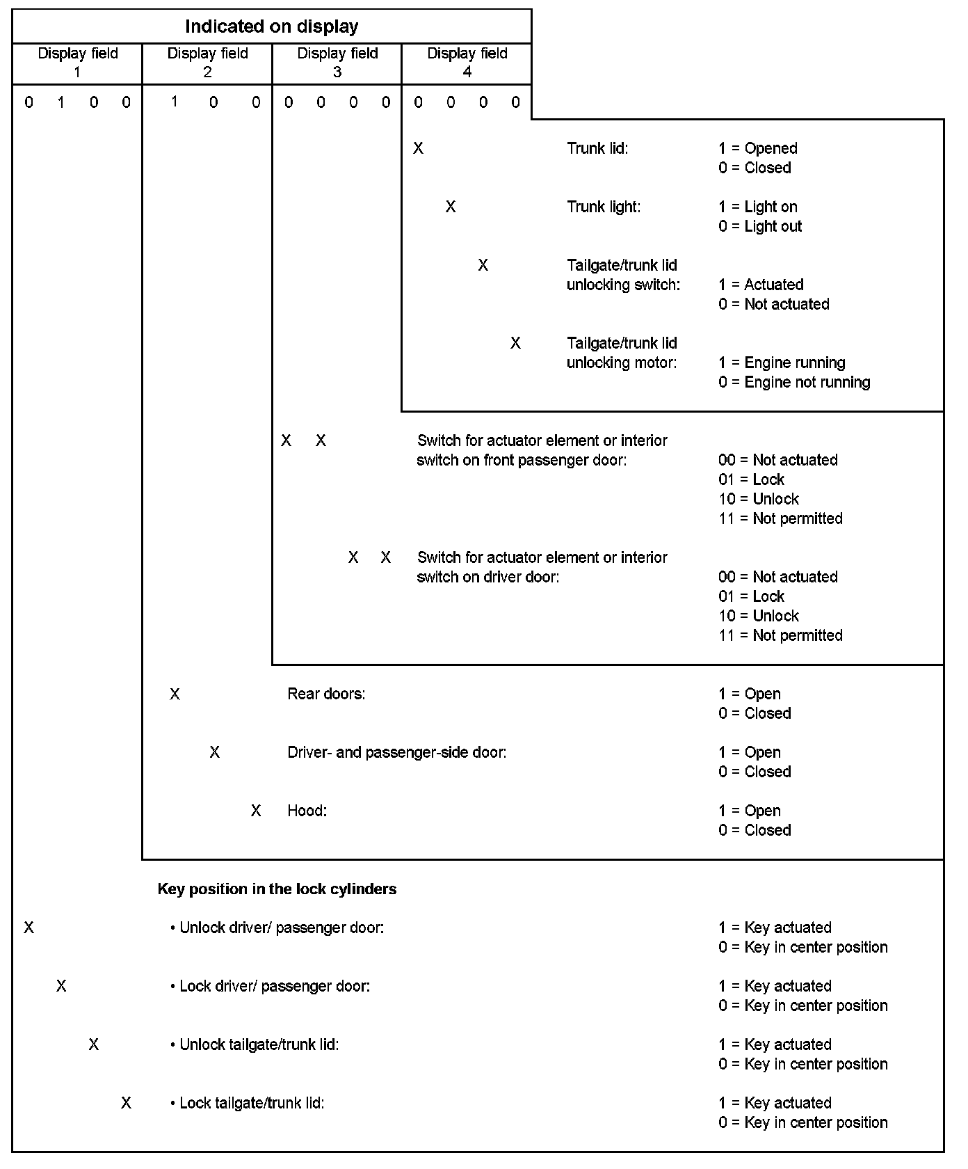 The current central locking system status can be ascertained using the "Read Measuring Value Block" function.