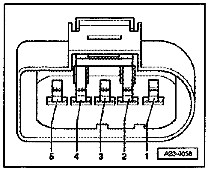 - Connect hand-held multimeter (voltage measurement range) between sockets 2 and 3 of connector.