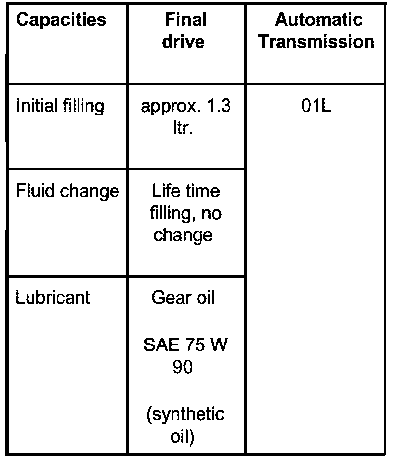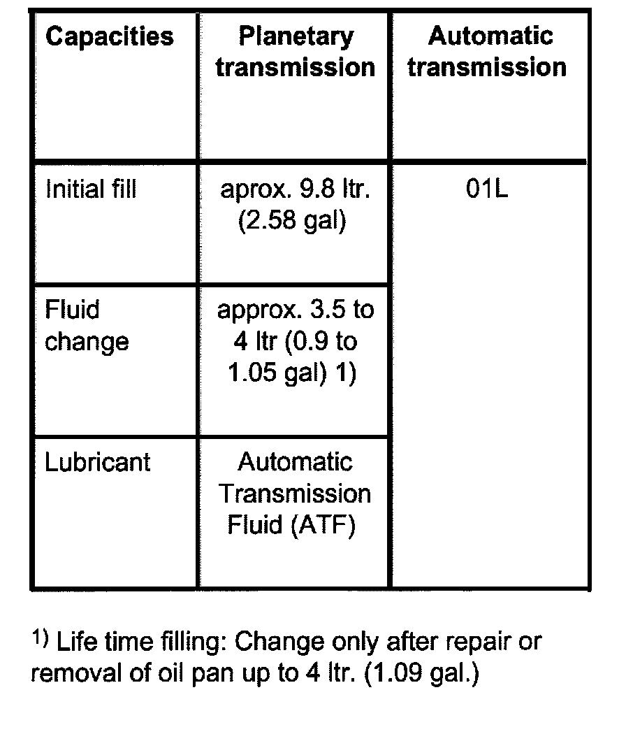 1) Life time filling: Change only after repair or removal of oil pan up to 4 liter (1.09 gal.)
