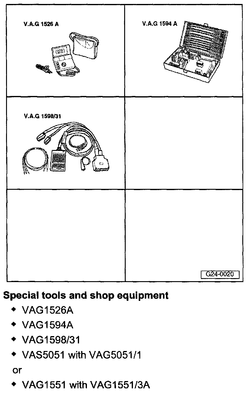 - Connect VAS 5051 vehicle diagnostic, testing and information system or V.A.G 1551 scan tool and select "Address word" 01 for control module for engine electronics.