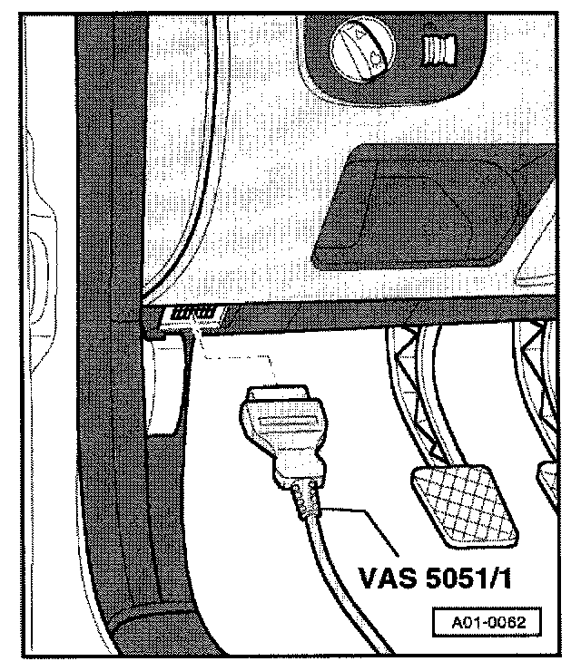 - Connect VAS5051 tester to vehicle with VAS5051/1 diagnostic wire. Alternately, VAG 1551 Scan Tool can also be attached using VAG 1551/3 adapter.