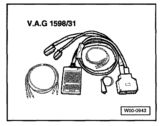 - VAG 1598/31 test box is designed so that it can be simultaneously connected to the wiring harness at the Engine Control Module (ECM) and also to the ECM itself.