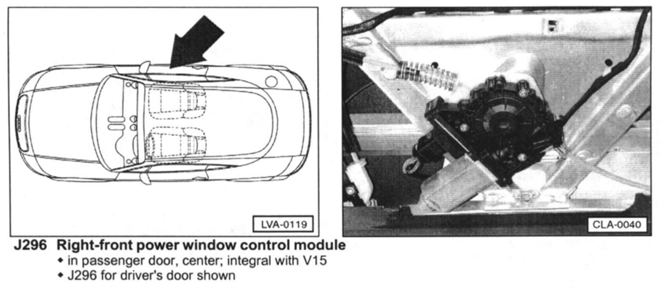 Right-front Power Window Control Module J296: