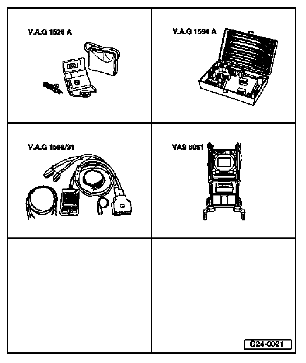 - Connect VAG1598/31 test box at wiring harness to ECM, do not connect ECM. Wiring and Component Testing Using VAG1598/31 Test Box