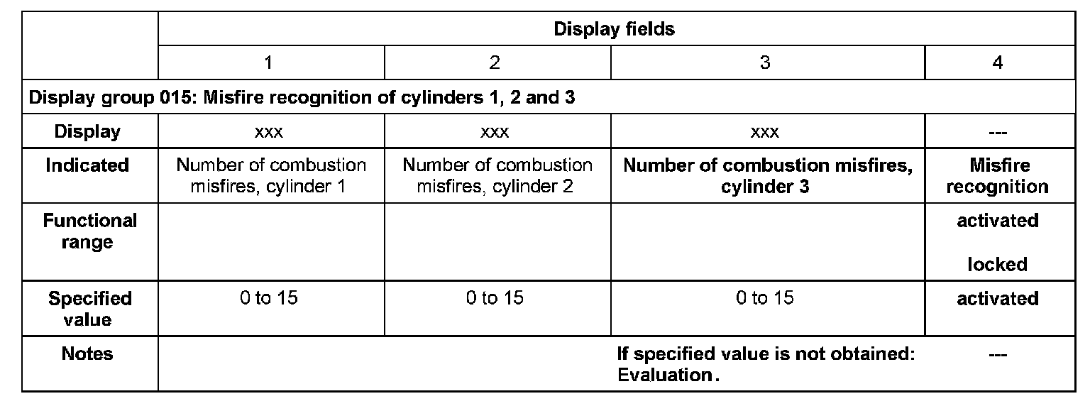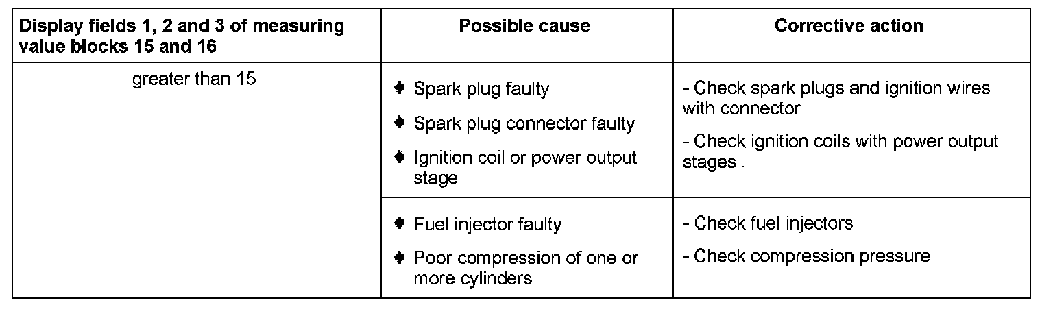 The following measuring value blocks indicate combustion misfires of individual cylinders: