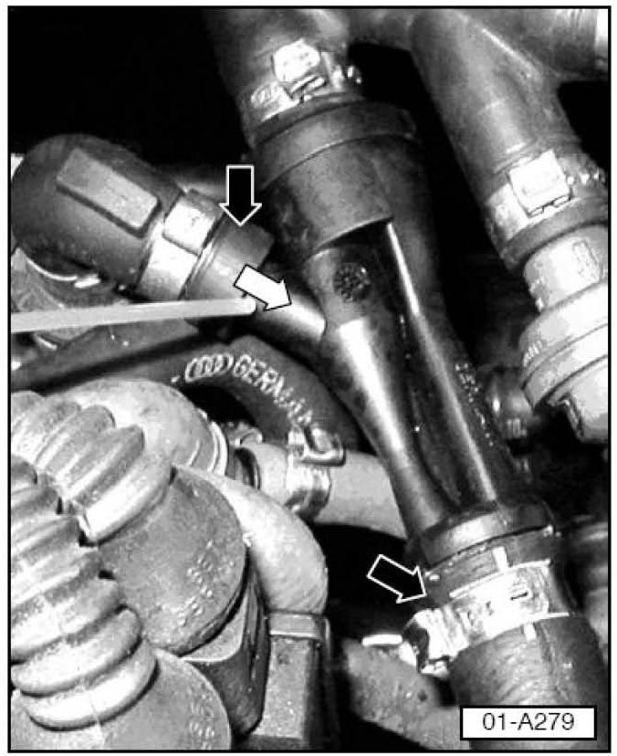 - Remove 2 hoses from suction jet pump -black arrows-.