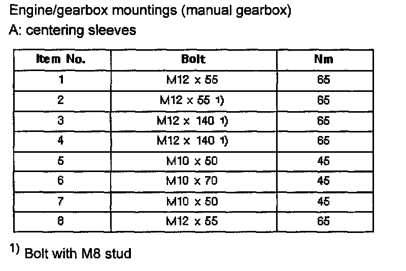 Engine/Gearbox Mounting Torques: