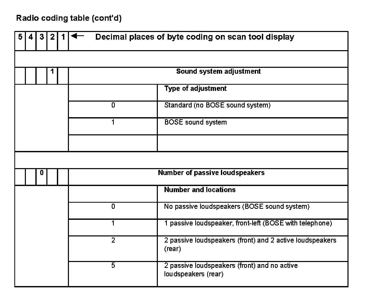 - The coding table only gives the combinations that are available for the Audi A4.