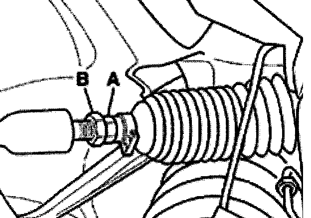 - Tighten lock nut -B- and check toe-in again.