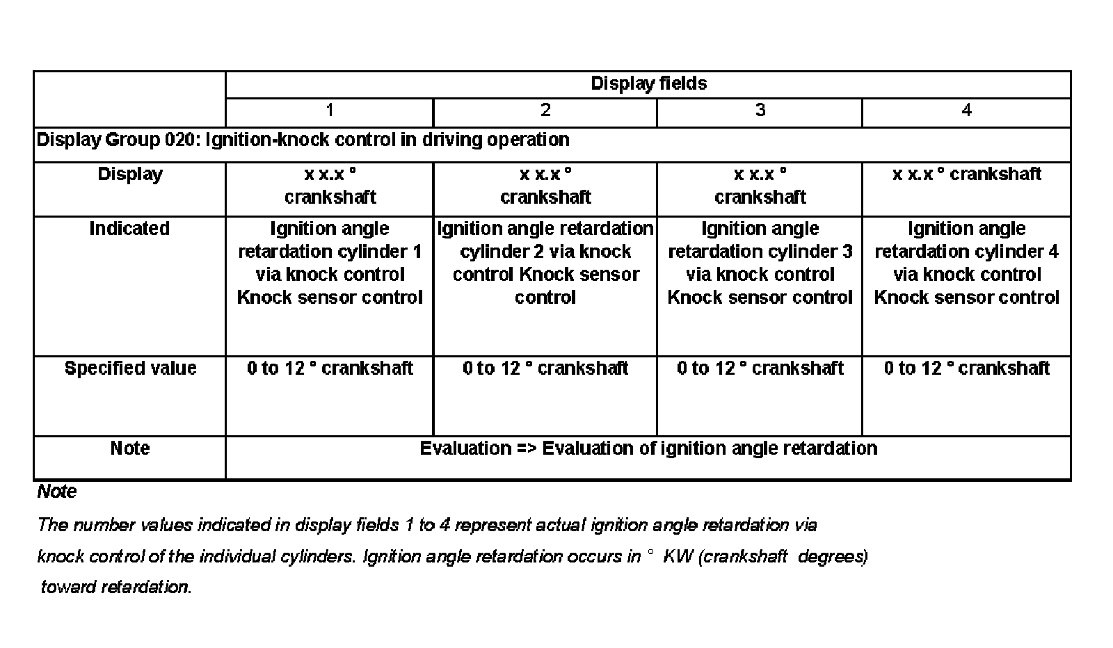 Evaluation of ignition angle retardation