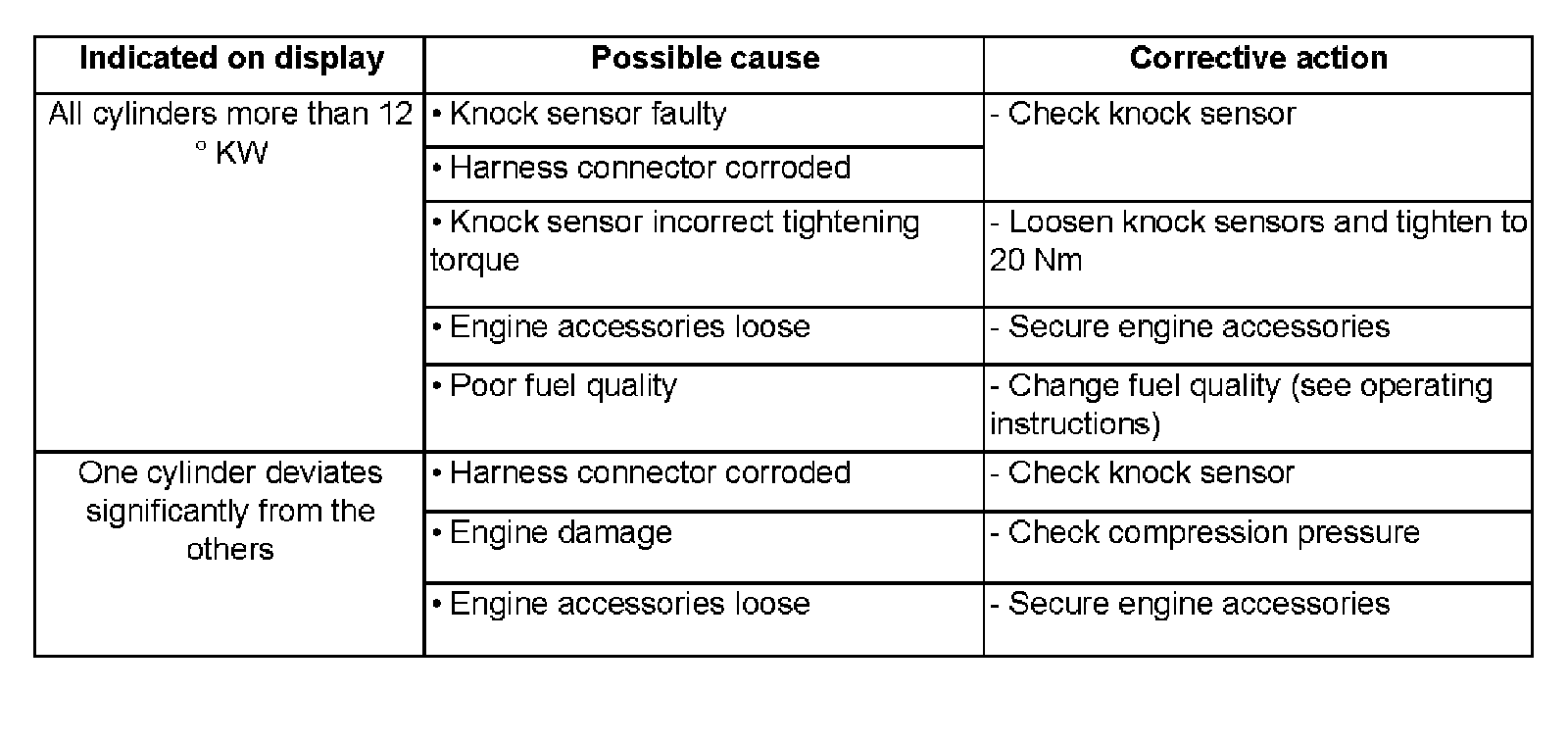 - Check knock control in display fields -1- to -4-.
