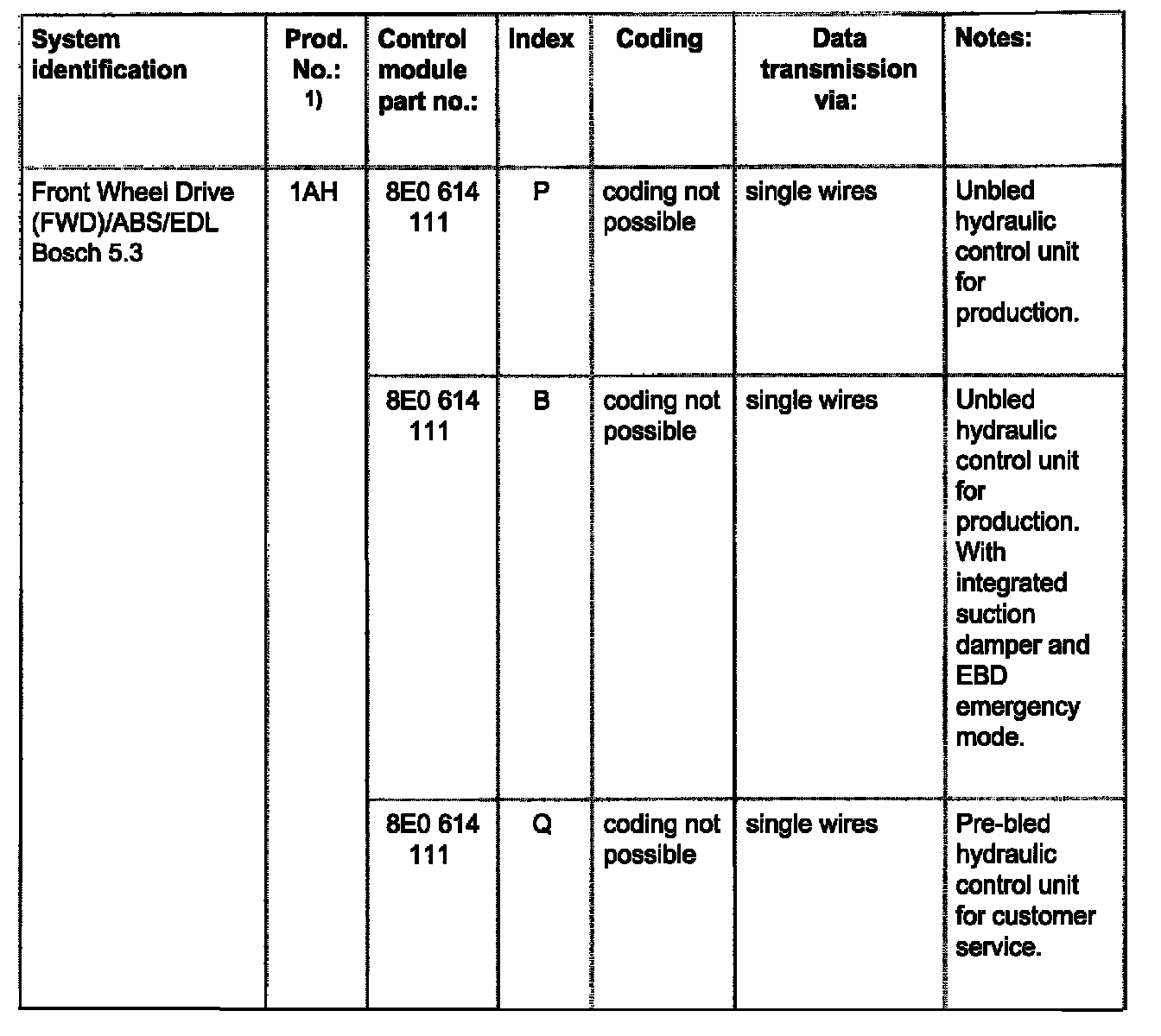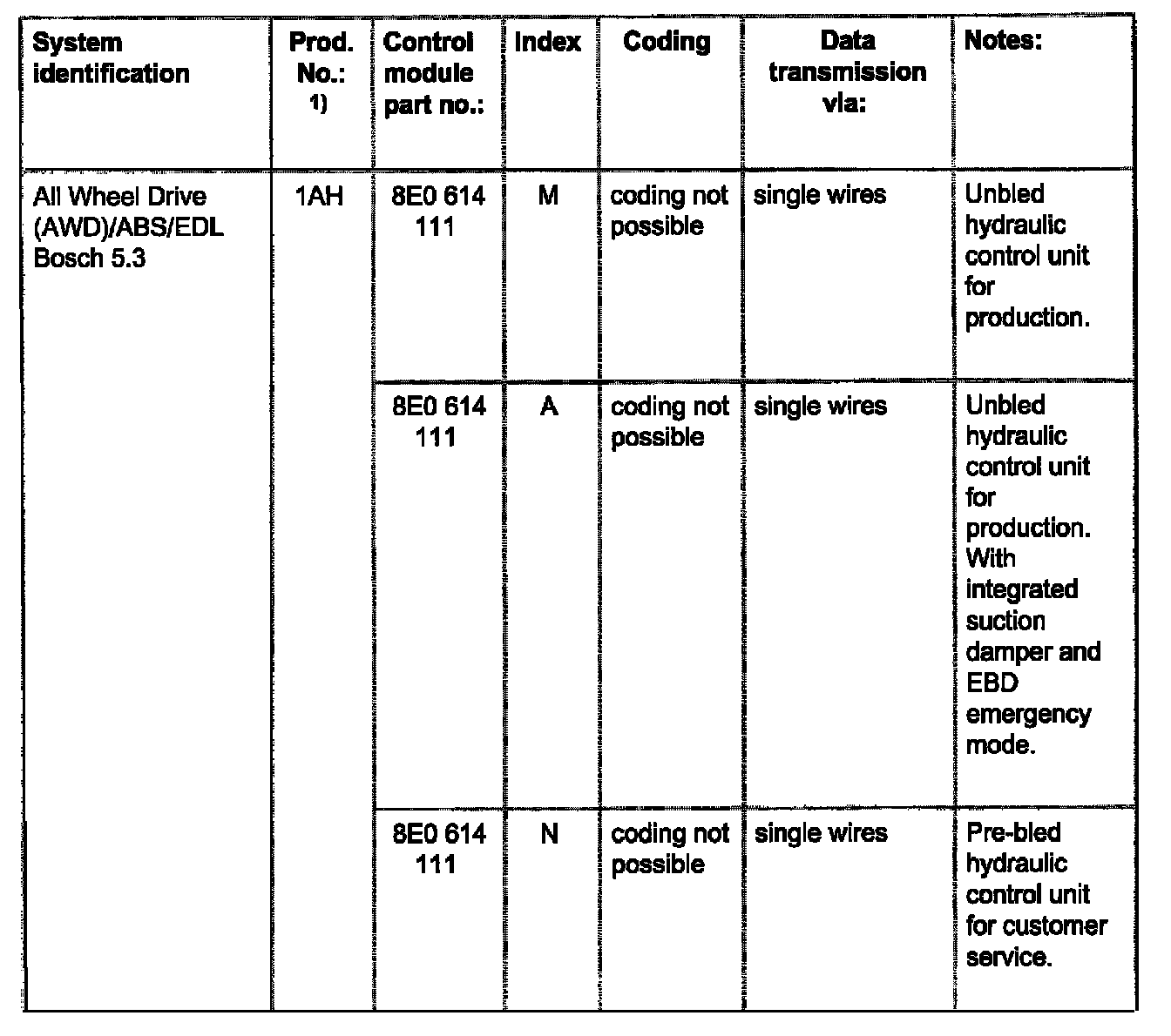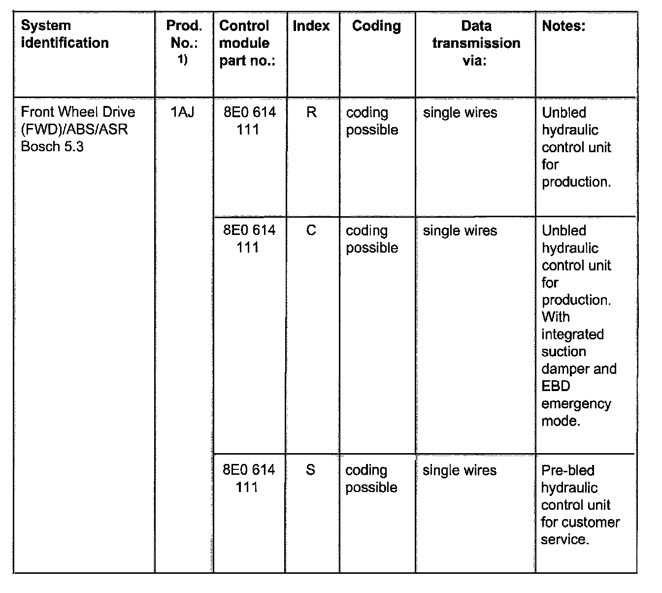 The coding is only indicated for vehicles with Anti-Slip Regulation (ASR), coding control module.