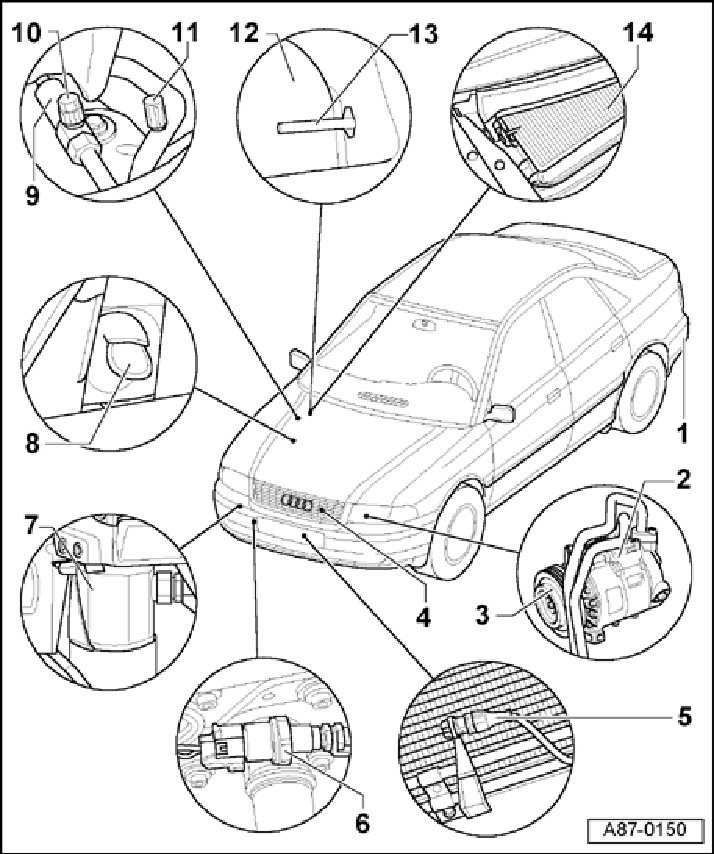 - Confirm proper coding of A/C control head -E87- (engine type dependant).