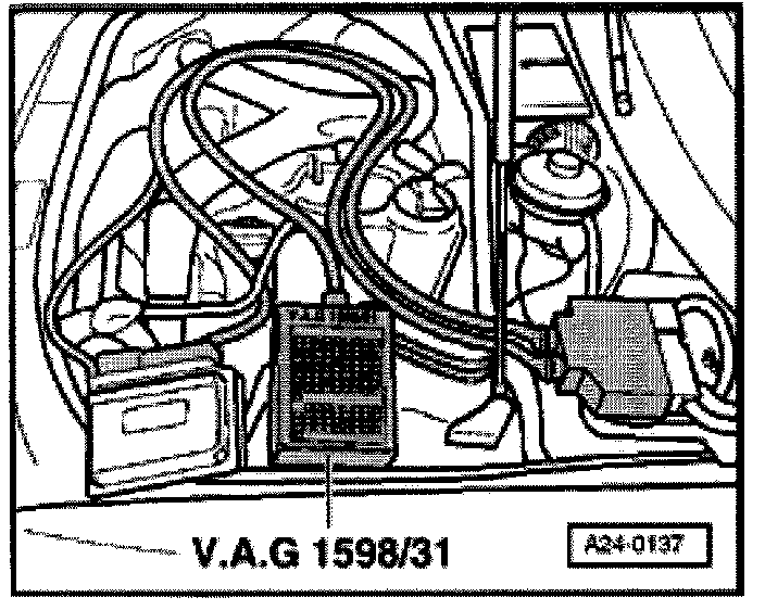 - Connect VAG1598/31 test box to wiring harness for engine control module. Do not connect to the engine control module itself. Refer to "Scan Tool Testing/Wiring And Component Check With VAG1598/31 Test Box", Testing and Inspection