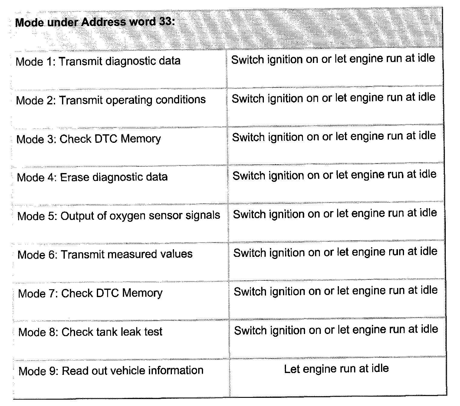 - Individual measured values can be read out under mode 1. Mode 1 is not recommended for authorized Audi service centers, since the data can be obtained much more accurately under address word 01 function 04 or function 08.