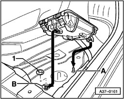 - Unclip box at -B- as shown.