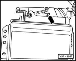 - Release connector by pressing catch in direction of arrow.