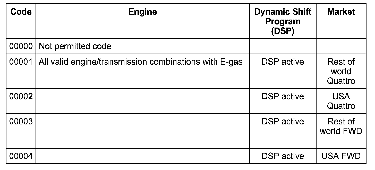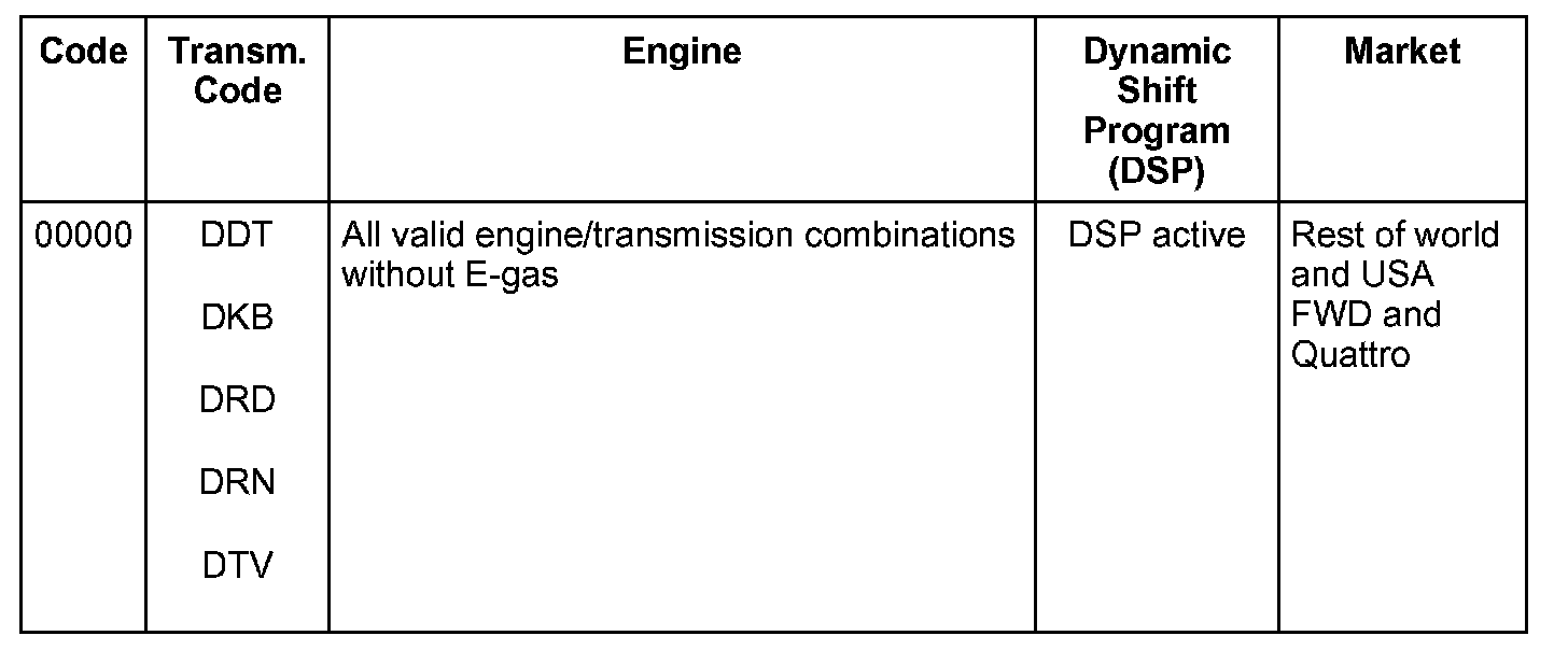Coding tables - 5 Spd. Automatic Transmission 01V