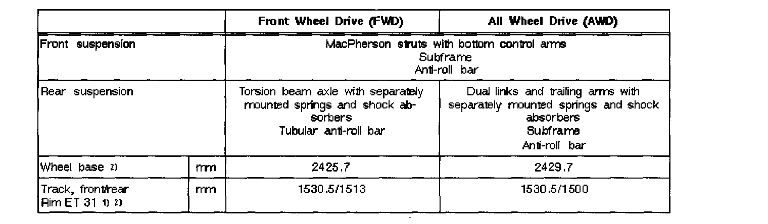 2) Wheelbase and track widths have a tolerance of ±6 mm.