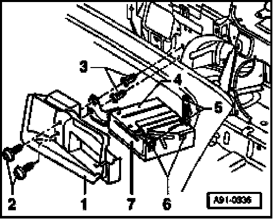 - Unscrew the four mounting screws -6- (2 Nm) at left and right at control module for navigation with CD drive -7-, and remove it from the installation frame -4-.