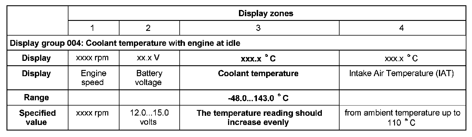 - Check Engine Coolant Temperature (ECT) sensor -G62- in display zone -3-.