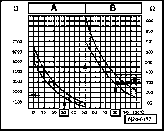 - Range A shows resistance values for temperature range 0...50 degree C and range B shows the values for temperature range 50...100 degree C.