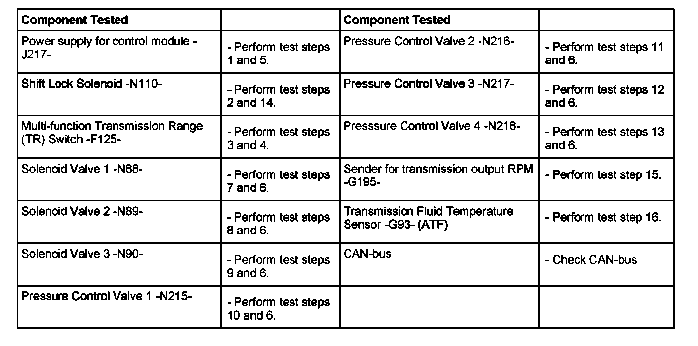 ^ Perform only the test steps listed by component in the DTC Chart and the Measured Value Block.