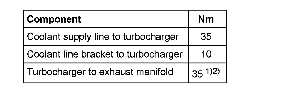 Turbocharger to exhaust manifold 35 Nm 1) 2)
