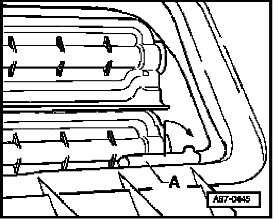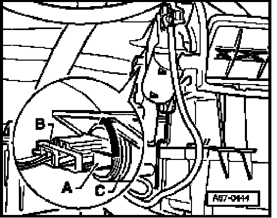 - Reach between air conditioner and floor of plenum chamber on temperature sensor -A- and turn approx. 90 degrees.